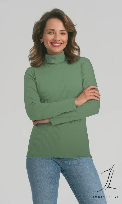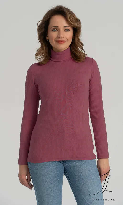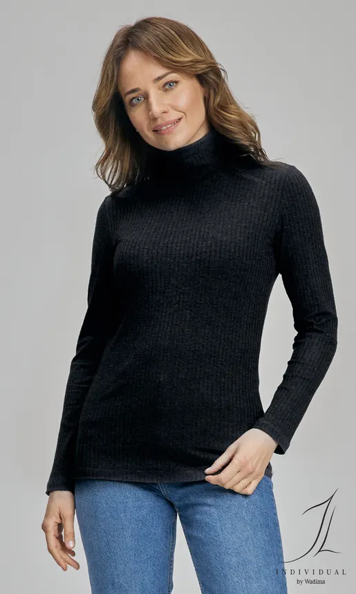 Elegancka, z wywijanym, nie obciskającym golfem. Wykonana z połączenia delikatnej wiskozy modal, miękkiej bawełny i sprężystego elastanu. Dzianina cienka, miękka, miła dla ciała.